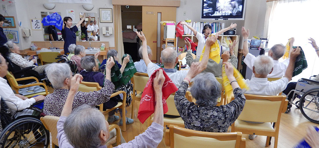 - レクリエーション、集団リハビリ(頭の体操、身体を動かす体操)